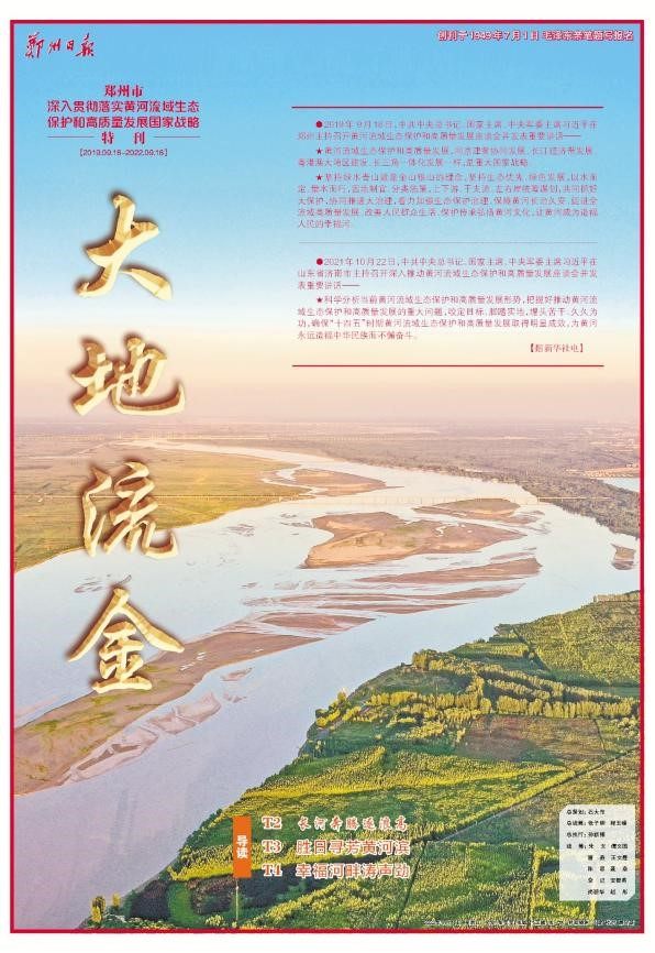 (4)展现“黄河战略”生动实践。2022年,郑州日报推出特刊《大地流金》,展示了习近平总书记殷殷嘱托在中原大地迸发出的磅礴伟力和郑州贯彻落实总书记重要指示精神的生动实践,特刊还通过新媒体广泛传播。联动沿黄九省区,举办2022年中国(郑州)黄河文化月活动,推出“黄河儿女心向党”系列报道,全面贯彻落实习近平总书记“保护传承弘扬黄河文化”重要指示精神。