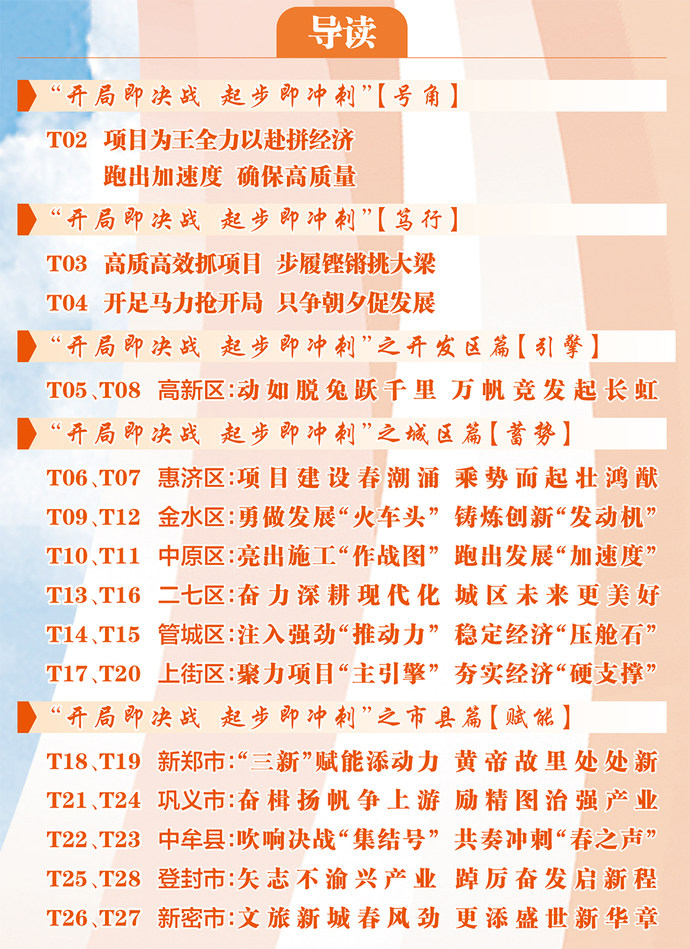 狠抓项目建设、确保高质量发展,要做到“开局即决战、起步即冲刺”。疫情防控政策优化调整后,经济社会正在强劲复苏,我们要抓住有利时机,以“开局即决战、起步即冲刺”的精气神,抢抓扩大有效投资“窗口期”,奋力冲刺一季度,以“闯拼干”的竞进姿态,拼招商、抓投资、攻项目,把一个个项目打造成为支撑高质量发展的强劲引擎,汇聚起郑州经济高质量发展和国家中心城市现代化建设的磅礴力量。