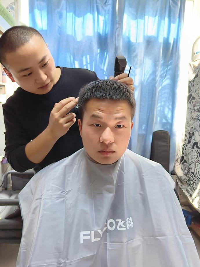 为响应学院学雷锋系列活动号召,陈深深、潘瑞、董浩凯3名党员同学手拿梳子、剪刀、电推剪等理发工具,为有需要的同学义务剪发。其中,2022级农机1班班长陈深深是一名共产党员,同时还是一名优秀的退役士兵大学生,在部队服兵役的时候,陈深深帮战友理过发,学院的学雷锋活动,他主动请缨、积极报名,想为有需要的同学提供帮助。在雷锋月期间,他化身“身边的雷锋”。手持一把推子,一把梳子,在细微的地方仔细修剪,就是这样一套操作步骤,陈深深平均每天要重复好几遍,为同学们解决了“头等大事”。