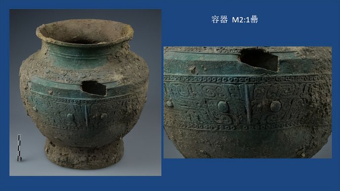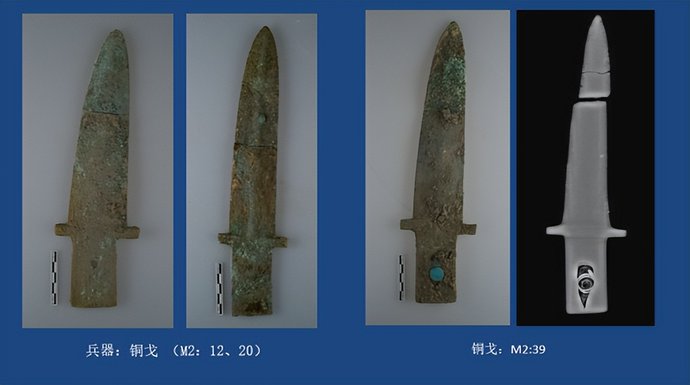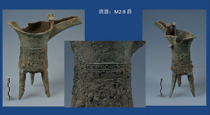 郑州商都书院街商代墓地残存面积约1万平方米,墓地南北两侧发现两条壕沟,壕沟东西走向,间距约130米。墓葬主要分布于两条壕沟之间的区域,共发现25座,其中3座墓葬出土青铜器,6座疑似祭祀坑,其余16座推测为陪葬墓,均无棺椁葬具和陪葬器物。2号墓(M2)是郑州商城考古发现等级最高的墓葬,墓口长2.93米,墓葬中间发现疑似朱砂的红褐色遗迹现象,墓内出土各类器物200余件,其中青铜礼器、兵器20件,玉器11件、金器5件,另有贝币123枚、绿松石管珠、镶嵌绿松石的牌饰等,充分彰显了墓主人的高等级贵族身份。