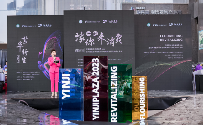 5月18日,2023中部品牌交流会在银基广场举办,来自中部六省及周边省份的电商平台头部达人及多位嘉宾参会。当日下午,以 “豫你一起来消费”为主题的河南服装电商促消费大会暨河南省服装行业电商专业委员会成立大会”在银基广场举办。