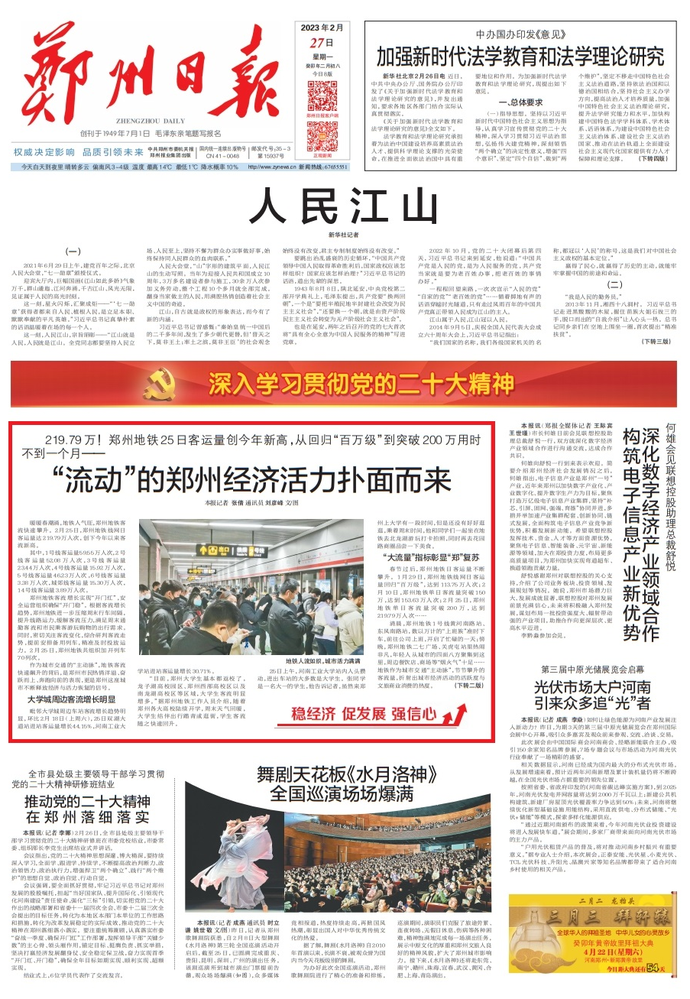 清晨,郑州地铁1号线黄河南路站、东风南路站,数以万计的“上班族”准时下车,前往公司上班,开启了忙碌的一天;傍晚,郑州地铁二七广场、关虎屯站里热闹非凡,年轻人从城市的四面八方聚集到这里,周边餐饮店、商场等“烟火气”十足……地铁作为城市交通“主动脉”,节节攀升的客流量,折射出城市经济活动的活跃度与文旅商业消费的热度。春节前后,随着郑州市出台多项提振经济政策,各行各业开足马力奋力拼搏,郑州各大商圈、文化旅游迎来消费热潮,城市正在全方位复苏。