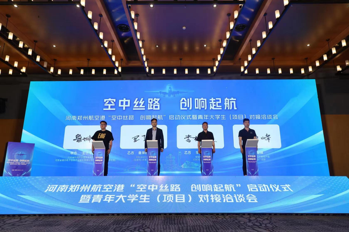 5月19日上午,“空中丝路-创响起航”启动仪式暨青年大学生(项目)对接洽谈会在郑州航空港区举行。郑州航空港区组织人社局人才科科长师文萍发布“青年大学生就业创业黄金十条”。