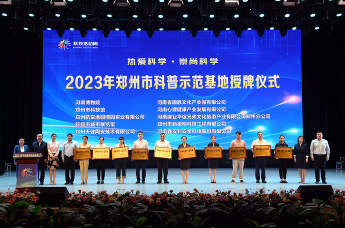 在启动仪式上,为2023年郑州市科普示范基地、科普教育基地授牌。