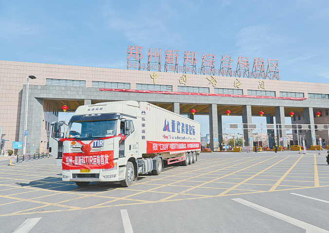 郑州—莫斯科货运车辆从郑州新郑综保区驶出(资料图片) 郑报全媒体记者 白韬 摄