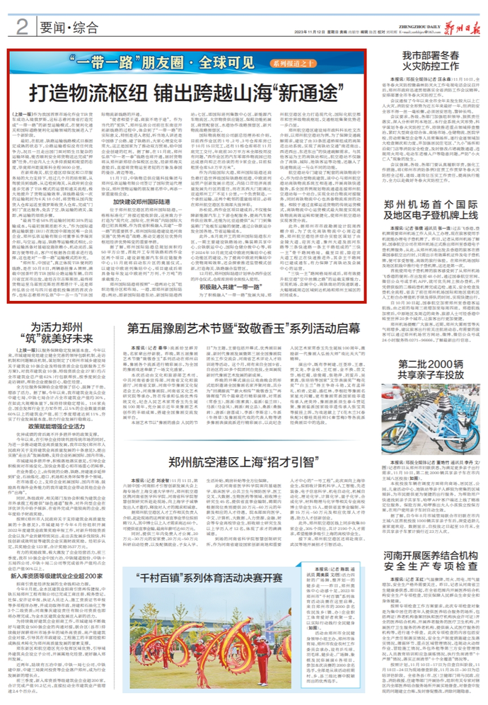 本报特别推出【“一带一路”朋友圈·全球可见】系列报道,深入报道郑州着力打造空、陆、网、海“四路协同”立体开放通道体系,进一步构建立体化、全方位的开放通道和载体平台支撑体系的新实践。