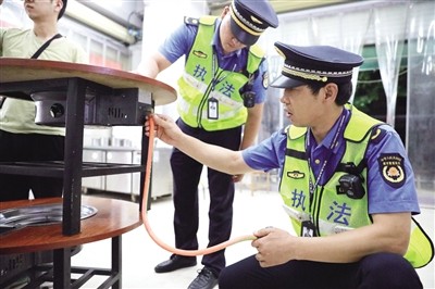执法人员排查瓶装燃气安全隐患。