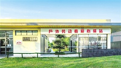 “工作条件可好,这设施比家里还好呢!”在郑东新区金水路与东风南路的户外劳动者爱心驿站,调研团与正在此处休息的环卫工人亲切交谈。占地33平方米的户外劳动者爱心驿站内置冰箱、电视、休息桌椅、微波炉等基本设施和休闲娱乐设施,同时,配备了应急药箱、多功能工具箱、净水器等设备。爱心驿站实现了线上线下同时管理,为城市一线工人、快递员、外卖骑手、出租车驾驶员等广大户外劳动者提供休息、纳凉、学习场所,打造了标准化便民服务“新地标”。据悉,郑州市现有户外劳动者爱心驿站示范点173座,年底前将达到184座。“让户外劳动者冷可取暖、热可纳凉、渴可饮水、累可歇脚只是建立爱心驿站的起点,而不是终点。”调研团强调,要继续完善站内相关服务设施,不断丰富拓展爱心驿站服务功能,从群众角度出发,给户外劳动者提供更贴心服务。还要大力宣传爱心驿站,让更多的户外劳动者能进来、愿进来,在充分发挥好爱心驿站功能和作用的同时,在全社会营造关心户外劳动者、爱护户外劳动者的良好氛围。