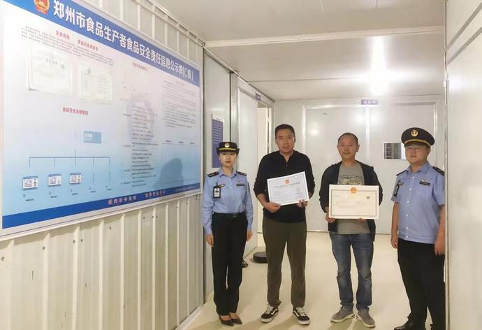 10月7日,郑东新区市场监管局分别向郑东新区米辛面饼食品加工坊和郑州肯德基有限公司郑州工商学院餐厅发放了郑州市首套“营业执照+河南省食品小作坊登记证”和“营业执照+食品经营许可证”联办证照。