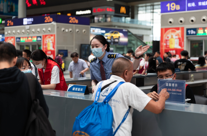 在保障旅客出行顺畅的同时,该站还注重为旅客打造温馨舒适的出行空间,郑州车站与郑州地铁做好服务联动,对出行不便的重点旅客做到“点对点”对接,服务好旅客出行最后一公里;郑州东站南落客平台车道其中一条隔离带扩宽,由单车道改为双车道,落客密集区域协调交警加强指挥疏导,避免进站车流大造车拥堵耽误后续排队旅客进站;依托站管内各服务台,为出行的旅客备足一次性水杯、小药箱和针线包等便民服务用品,随时随地解决旅客出行中的“疑难杂症”。同时,该站还依托110名志愿者组成流动服务站,将服务触角延伸到候车厅、站台、广场、地道、售票厅等各个角落,打造“一处受理全站联动”的立体化服务链,让旅客把难题留在站内,舒心出行。