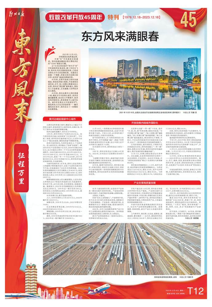 45年来,改革开放助力郑州加速崛起,枢纽经济做大做强,开放高地加速形成,空中、陆上丝绸之路建设如火如荼,郑州的“朋友圈”越来越大,国际范儿日益彰显,正加速融入世界经济的大棋局。