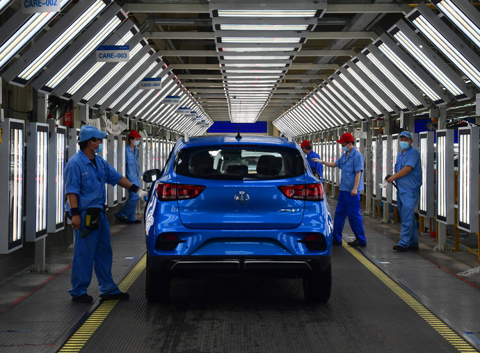 上海汽车郑州工厂正在下线检测的汽车 周甬 图