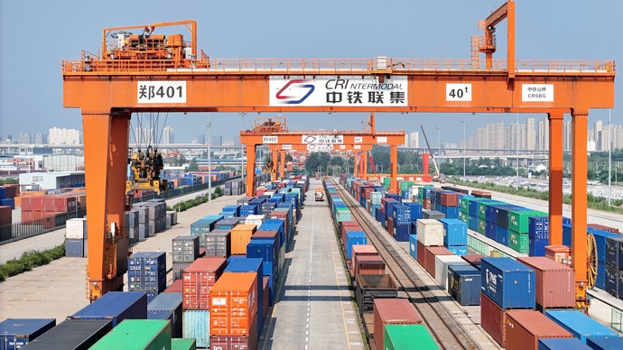 2023年8月3日,正在装车的郑欧班列。马健 图