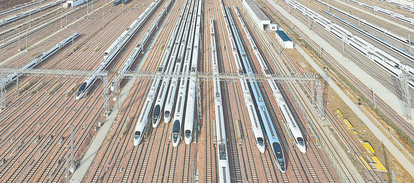 郑州动车段停放的高铁、动车 本报记者 马健 摄