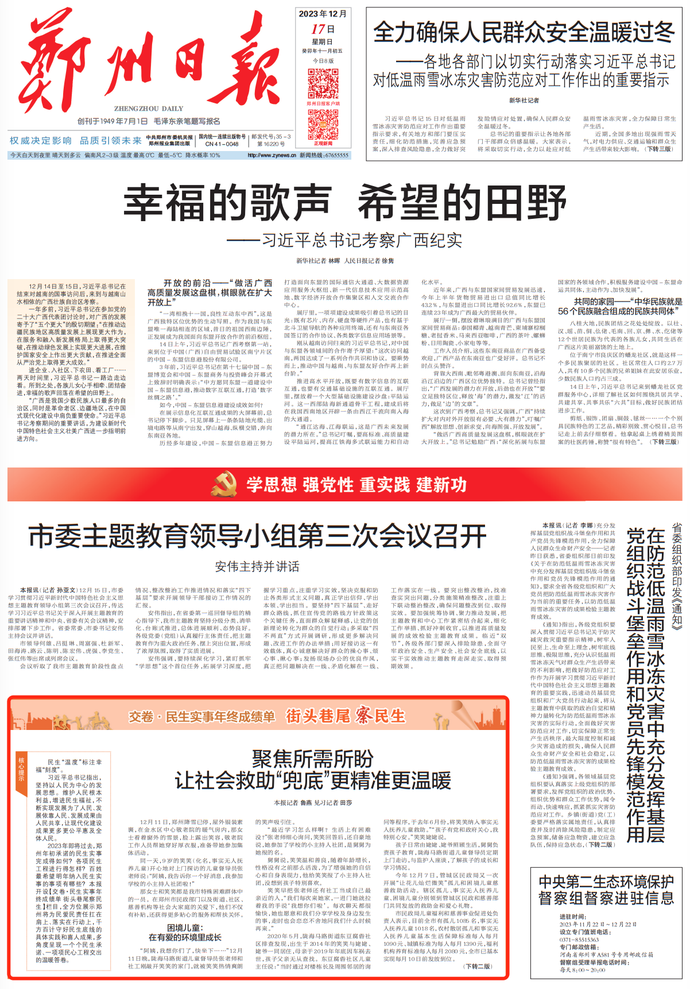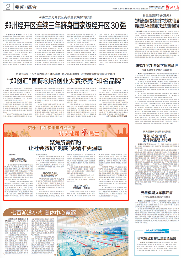2023年即将过去,郑州年初承诺的民生实事完成得如何?各项民生工程进行得怎样?百姓最希望明年纳入民生实事的事项有哪些?本报开设【交卷·民生实事年终成绩单 街头巷尾察民生】栏目,全方位展示郑州将为民爱民责任扛在肩上、落实在行动上,千方百计守好民生底线的具体实践和喜人成果,多角度呈现一个个民生承诺、一项项民心工程交出的温暖答卷。