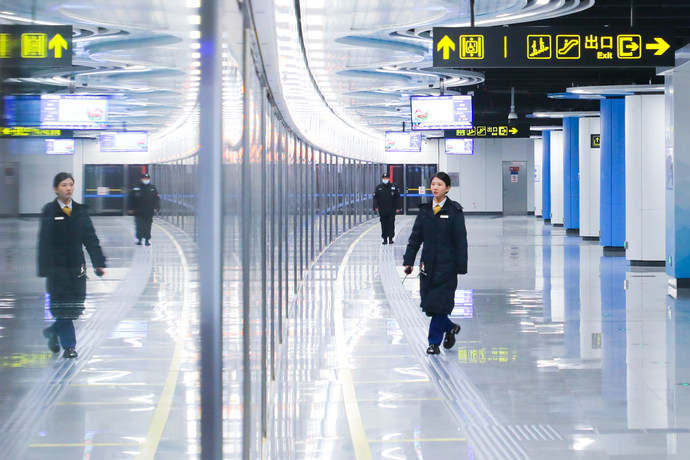 记者发现,12号线车站内均设置了无人客服中心、自助票务处理机,智能化设备等设置,不断提升乘客的乘车体验。同时,列车内座椅自动加热技术等高科技的使用更是让市民体验了城市智能化的便利之处。站内设AED自助体外除颤器、消防按钮、站内空间及应急疏散示意图等保护市民出行安全,儿童医院站还设有母婴室等便民服务。