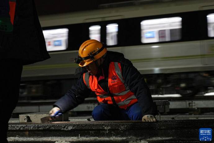 12月15日,郑州地铁集团有限公司运营分公司通号中心通号三室检修工人崔志超进行地铁检修作业。新华社记者 吴刚 摄