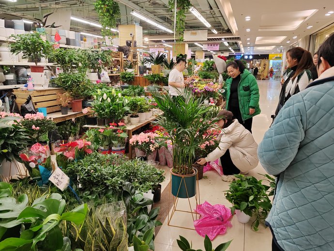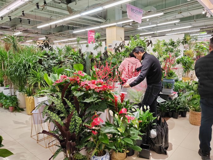 鸿运当头、一帆风顺、金玉满堂……走进花卉市场的盆花区,一盆盆色态各异、名字又寓意美好的盆栽花正在展姿迎客。花店经营者郑先生告诉记者,冬季天气寒冷,室外万木凋零,很多人就会选择在屋里放一些盆栽花,为室内增添一些“春意”,加上新年将近,那些美观大气又寓意美好的盆花就成了很多人尤其是中老年人的选择。