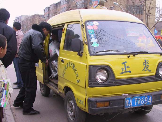 2002年,郑州街头正在上客的黄面的,当年的出租车可以“客货同载”。周甬 摄