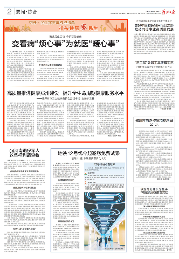 看病就医是民生关切。郑州市聚焦群众关心关注的急难愁盼问题,坚持以人民健康为中心,以改善群众看病就医体验为出发点,以为民服务为落脚点,积极主动作为,让一件件看病就医的“烦心事”,变成了舒心就医的“暖心事”。