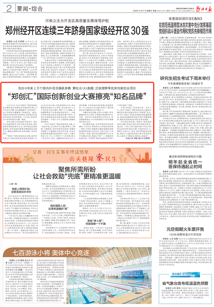 本届“郑创汇”活动再升级。当天下午,2023“郑创汇”国际创新创业大赛总决赛首次在郑州高新区举办“郑创营”活动,为今年“郑创汇”获奖项目提供创业融资辅导、院校及投融资机构结对签约等赋能服务,推动优质创新创业项目在郑州落地。