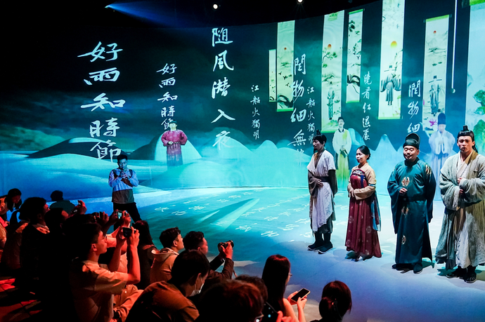 旅程从诗圣杜甫的故里启程。在耳熟能详的诗文中,来自全国各地的博主在这里了解杜甫生平,感悟其唐诗背后的历史底蕴与文化内涵。在唐诗《茅屋为秋风所破歌》展板前,博主们纷纷谈起上学时背诵课文的经历,并在随后的沉浸戏剧表演《归乡》中感受了杜甫波澜壮阔的一生。“第一次来到这位唐代大诗人的故里,参观了杜甫出生的窑洞,这里的文娱活动设置得非常好,可以全面了解杜甫与本地历史。”历史博主@老猪的碎碎念韩新辉参观杜甫故里后,向记者分享道。