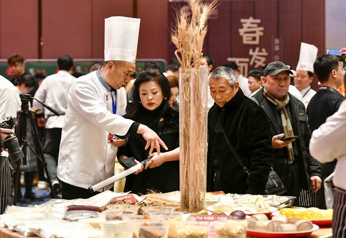 从biang biang面到庆丰包子,再到太和板面,多位非遗传承人分享了美食背后的历史故事。biang biang面因何得名?非遗传承人卜二龙介绍,“biang”字是从“咸阳河水biangbiang”中衍生而来的,因这个面制作过程中有biang biang的声音而得此名。“荸荠肚、石榴嘴、十八个褶。”非遗传承人刘晓东说,庆丰包子如今已经有70多年历史,也有了非常规范的外观标准。非遗传承人李巍说,小小一碗太和板面,装有“板面粉、板面肉、板面料、板面菜”四大产业。