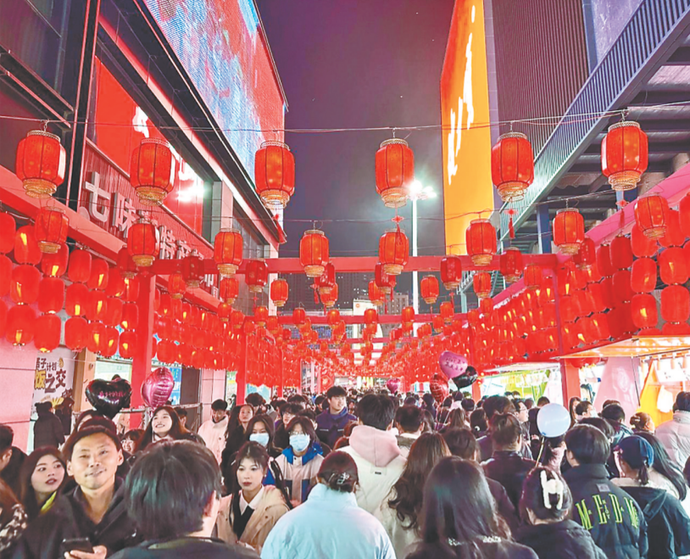 夜幕降临,华灯初上,神圣庄严的二七塔被红色灯光晕染,与德化商业街的璀璨霓虹交相辉映。辞旧迎新之际,二七商圈呈上一场目不暇接的活动盛宴。民俗市集热闹开市,大红灯笼高高挂起,充满传统年味儿;非遗传统文化体验区人头攒动,群众近距离感受传统文化魅力。同时,打卡二七商圈五大人气商场,参与游戏互动,收集文创“碎片”,有机会获得2025二七商圈首发文创产品“寻找二七塔”。