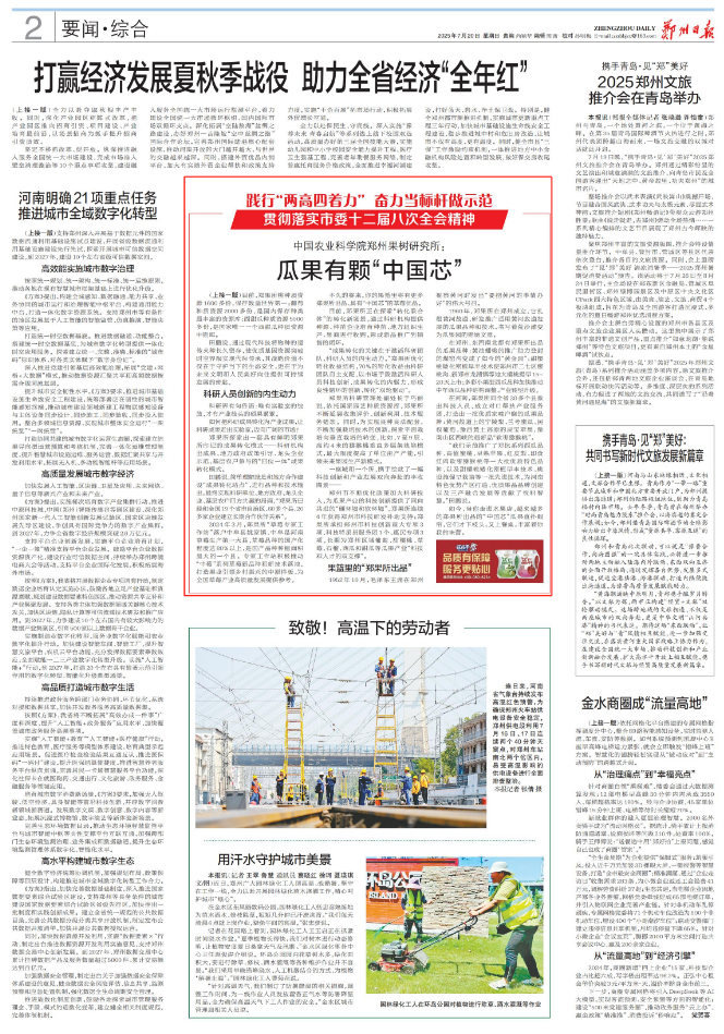 1960年,郑果所在郑州成立,它扎根黄河故道,研发推广适用黄河故道发展的瓜果品种和技术,书写着荒沙滩变为瓜果园的锦绣文章。