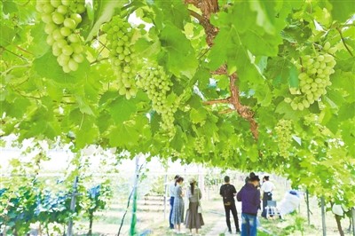 国家葡萄桃资源圃内的葡萄长势喜人 本报记者 李新华 摄