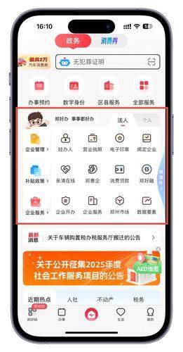 在保留“个人”热门服务事项展示窗口的基础上,可一键切换至“法人”办事页面。企业服务及相关补贴政策一键触达,为优化郑州营商环境提供强力数字化支撑。
