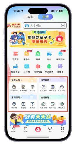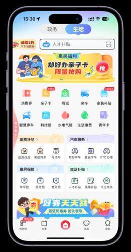 6.0版本将生活服务中的高频事项提炼出“消费补贴、汽车服务、惠民保险、生活补贴”四个类目,更贴合群众日常生活,承包郑州市民的衣食住行。