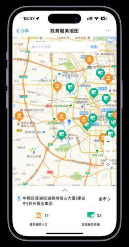 用户可在“办事”页面查看“郑州市政务服务地图”,快速获取全市政务服务大厅、自助服务终端所在位置。结合手机导航,一键规划路线,让线下办事也能“精准直达,少走弯路”。