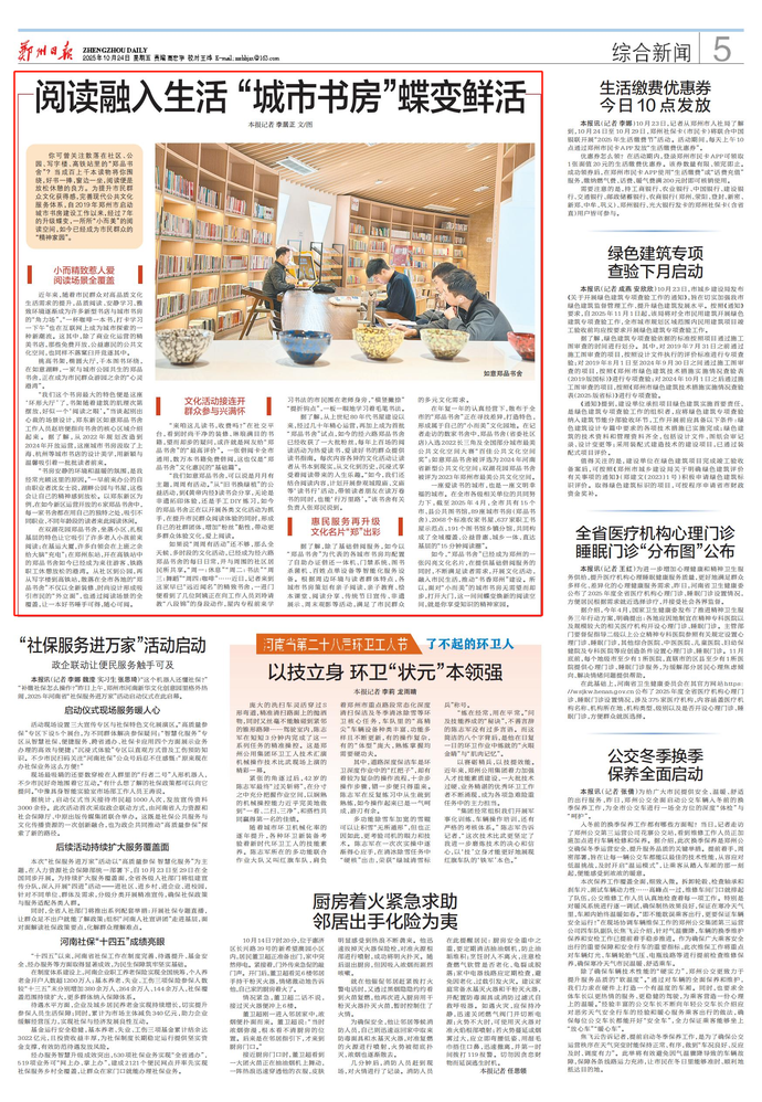 一座爱读书的城市,也是一座文明幸福的城市。在全市各级相关单位的共同努力下,截至2025年4月,全市共有15个市、县公共图书馆,89座城市书房(郑品书舍)、2068个标准农家书屋、637家职工书屋示范点、191个图书馆乡镇分馆,共同构成了全域覆盖、公益普惠、城乡一体、直达基层的“15分钟阅读圈”。