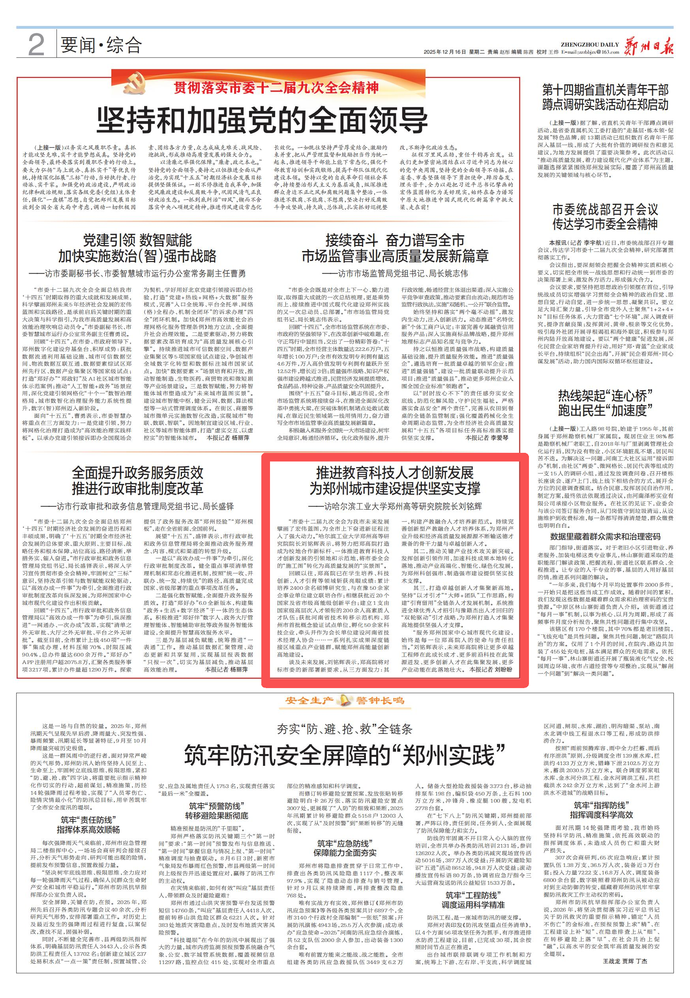 “市委十二届九次全会为我市未来发展擘画了宏伟蓝图,为全市上下奋进新征程注入了强大动力。”哈尔滨工业大学郑州高等研究院院长刘铭辉表示,将努力把郑高院打造成为校地合作新标杆、一体推进教育科技人才创新发展的引领地和示范地,将市委全会的“施工图”转化为高质量发展的“实景图”。