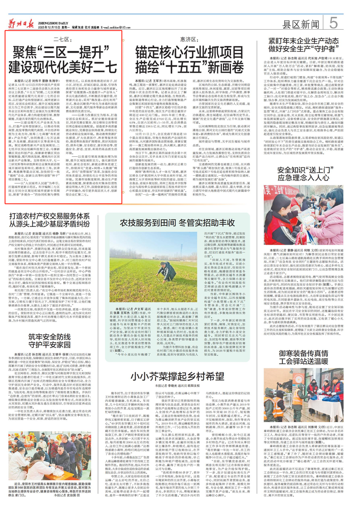 记者从12月12日召开的中国共产党郑州市二七区第十二届委员会第九次全体会议上获悉,“十五五”时期,二七区将锚定高质量建设现代化美好二七的总目标,以打造产业转型创新区、城市更新示范区、安居乐业和美区、提升区域发展软实力为工作总抓手,突出建设以现代服务业立区和科技型工业强区为支撑的现代化产业体系,着力构建党建引领、数智赋能、共建共享的现代化治理体系。