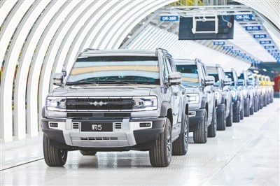 在比亚迪郑州基地的总装车间,一辆辆新能源汽车在生产线上快速移动,不到1分钟就有一台新车下线。