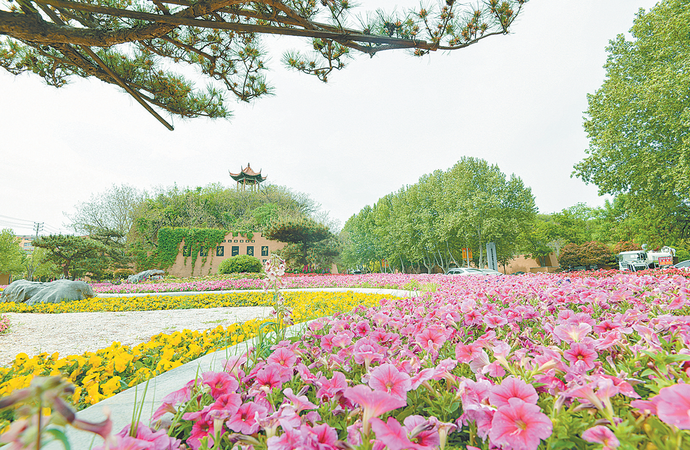 从新郑新区高速出口到黄帝故里园区,一路上繁花似锦,各色花卉形态饱满、热烈绽放,与滨河公园、绿色廊道等城市景观融为一体、相映成趣。