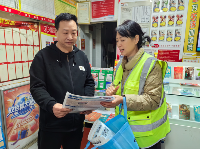 “‘寒冬送温暖’行动全市开启,政策宣讲及求助的方式方法等宣传资料都发您看看,不仅想动员您,也希望通过您动员彩民参与到社会救助工作当中去。”梁新爱将爱心联系卡、《致市民的一封信》、救助政策解读等宣传资料发放给刘老板,并感谢其支持救助站的工作。