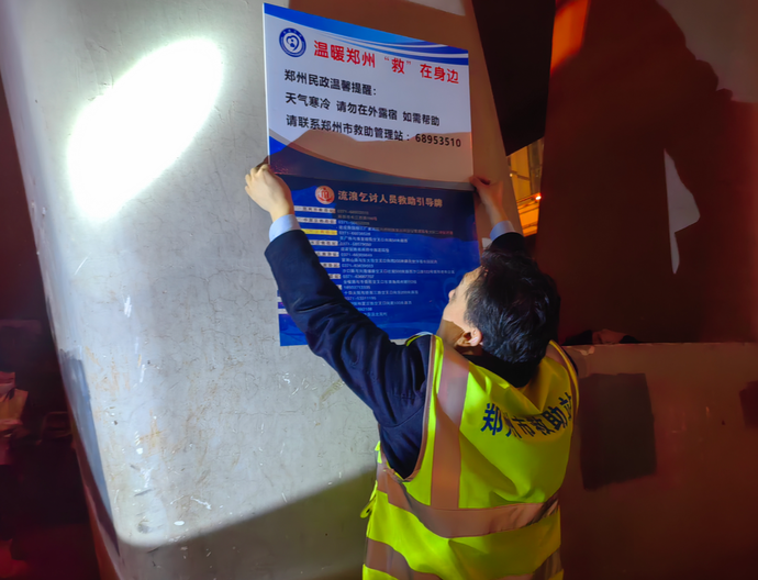 记者注意到,巡查的同时工作人员也会查看路段周围情况,在重点路段和滞留区张贴温馨救助提示牌。深夜10点的郑州街头,夜色深沉,雨丝绵密,空气中弥漫着初冬的寒意,郑州市救助管理站的工作人员们已巡查近3个小时。“还得去解放路立交桥查看一下情况”,张贴完提示牌,救助站工作人员们又匆匆赶往下一个巡查点。