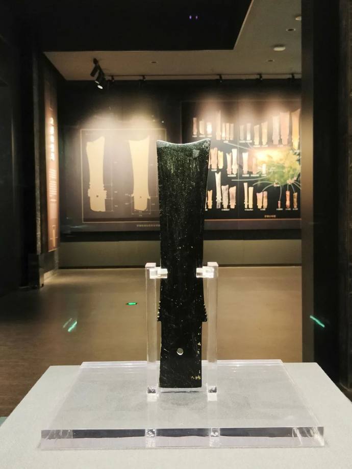 这是河南巩义花地嘴遗址出土的墨玉牙璋,现于郑州市文物考古研究院考古博物馆展出。新华社记者袁月明摄