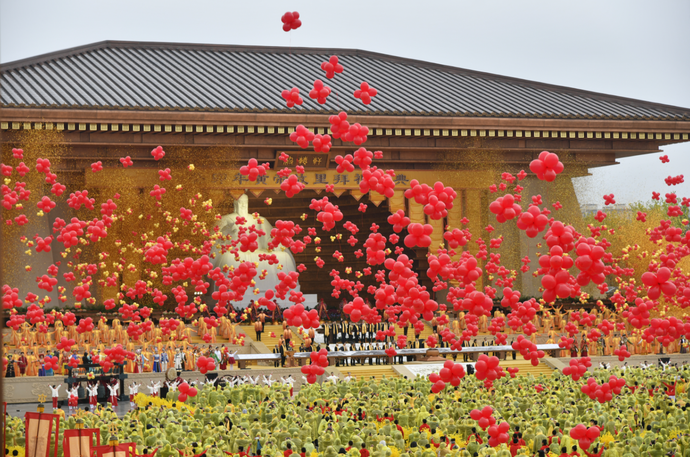 天地人和。拜祖广场上,和平鸽展翅高飞,礼赞和平;数万个气球升上天空,放飞心愿;巨幅红底黄字“天地人和”渐渐呈现,表达着对轩辕黄帝的敬仰和对中华民族伟大复兴、对世界和平和睦和谐的美好祝愿。
