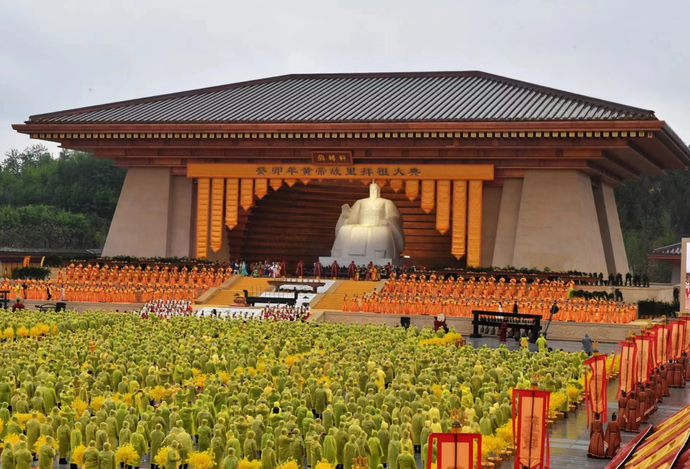 行施拜礼。现场人员面向黄帝像,深深三鞠躬,表达炎黄子孙对文明始祖的无限尊崇。