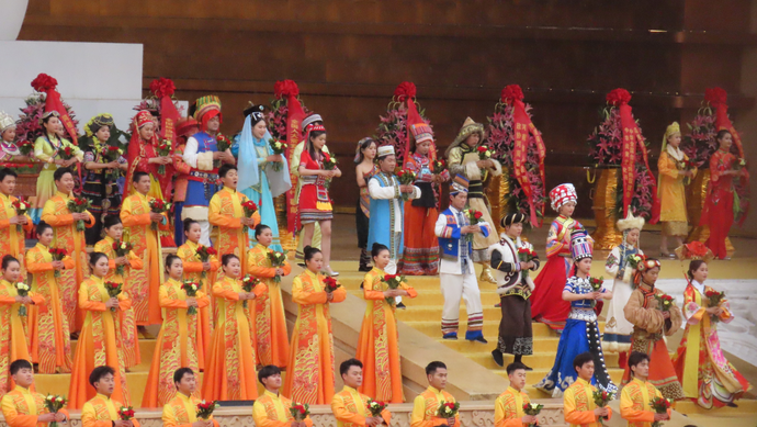 高唱颂歌。“大风起兮云飞扬,吾土吾心吾欢畅,四海之内皆和谐,吾思吾梦吾向往……”来自香港、台湾、澳门和内地的歌手与56个民族的演员以及少年儿童合唱团、百名混声合唱团共同高唱《黄帝颂》,体现炎黄子孙虔诚之心、恭敬之意。