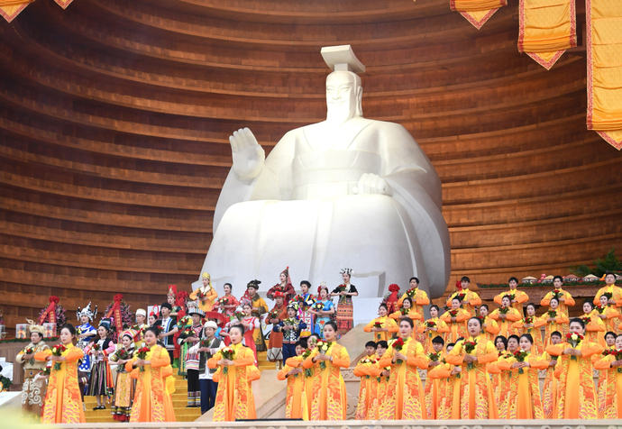 恭读拜文。“中华文明,源远流长。我祖勋德,泽被八方。教民耕牧,莳谷树桑。婚丧有礼,典制有章……”十二届全国政协副主席齐续春作为主拜人,代表亿万华夏儿女恭读拜祖文。