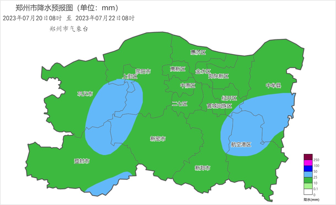 图1 2023年7月20日08时至22日08时郑州降水量预报