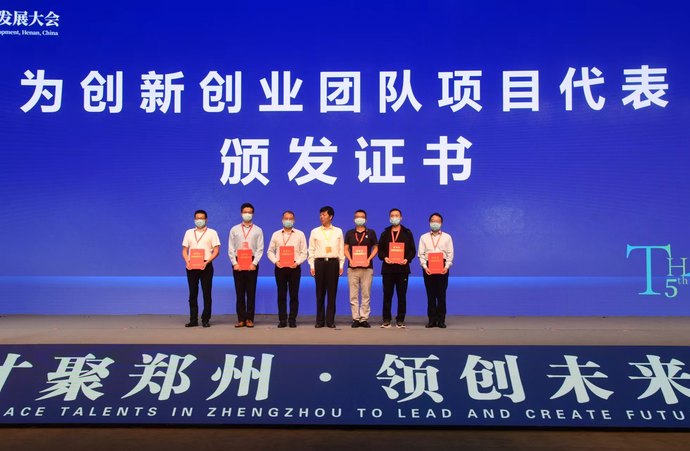 开幕式上,为郑州市6个优秀创新创业团队项目代表颁发证书。