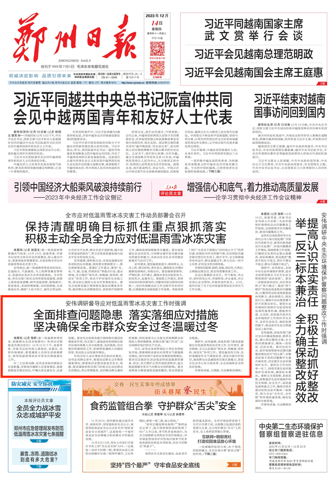 调研中,安伟强调,各级各部门要高度重视应对低温雨雪冰冻灾害工作,扛牢责任、落实措施,全力以赴做好“保生命、保畅通、保供给、保民生”各项工作。要加强宣传引导,及时准确发布天气预报信息,普及自救自护知识,提高群众应急避险和自救互救能力,营造全社会齐心协力战冰雪、众志成城保安全的良好氛围。
