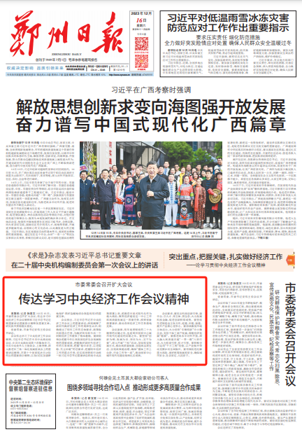 12月15日,市委常委会召开扩大会议,传达学习中央经济工作会议精神和习近平总书记近期重要讲话重要指示精神及重要文章,研究我市贯彻落实意见。
