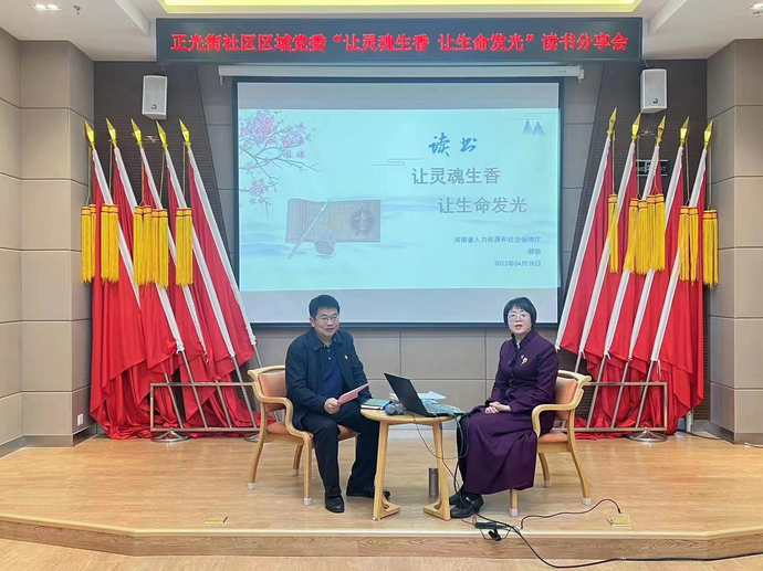 最是书香能致远,为进一步激发辖区广大青年的阅读兴趣,引导大家养成爱读书、善思考的习惯,4月28日上午,郑东新区祭城路街道正光街社区区域党委组织开展的“让灵魂生香 让生命发光”读书分享会。省人社厅二级巡视员郝银,向辖区青年分享读书思考和人生感悟,分享会由祭城路街道办事处主任张明杰主持。